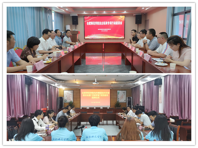 19日上午,徐成钢一行与团市委在贵池区秋浦街道举行座谈会暨“行知学堂”实践基地挂牌仪式。团市委副书记郑彪对徐成钢一行来池表示欢迎,就建立暑期志愿服务常态长效机制进行交流;贵池区秋浦街道孝肃社区教学点“行知学堂”小先生代表郑嘉铭进行发言;贵池区秋浦街道孝肃社区党委书记、居委会主任方芳介绍了合肥师范学院“行知学堂”的小先生们在社区开展“七彩假期”志愿服务活动情况。徐成钢希望合肥师范学院与池州共青团以“行知学堂”实践活动为桥梁纽带,在招才引智、产教融合、实习就业等领域探索开展更多的合作。
