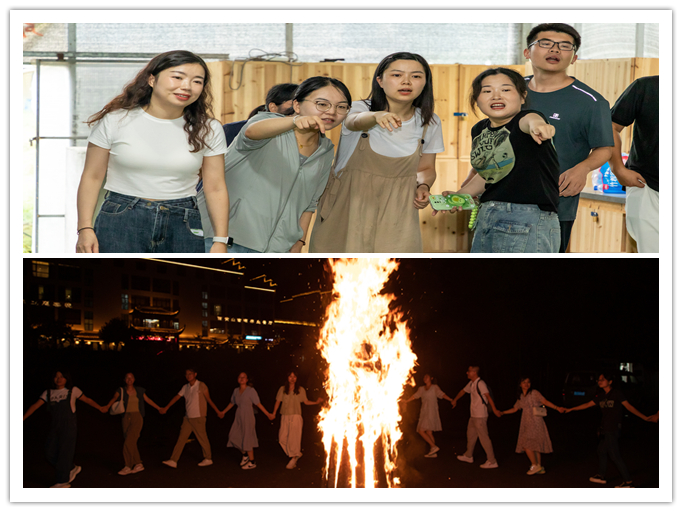 石台山间夜晚是天然的空调房,不负“天然氧吧”之名。大家相聚在露天广场,开始了三个小时的K歌、篝火和烟花晚会。吃着美味的烧烤,唱着一首首乐队民谣、一曲曲流行歌曲,在亲密温馨的氛围中,进一步增进了男女青年之间的交流。