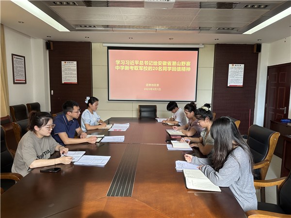 9月1日下午,团贵池区委召开机关全体会议,传达学习习近平总书记给安徽省潜山野寨中学新考取军校的20名同学回信精神。