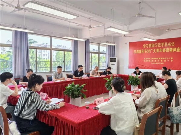 5月28日下午,贵池区少工委学习宣传贯彻习近平总书记五四青年节对全国广大青年寄语精神座谈会召开,团贵池区委书记、贵池区少工委主任韦振宏主持会议并讲话。贵池区部分学校少工委负责同志,学校大、中队辅导员代表,贵池区少先队辅导员名师工作室代表参加会议。