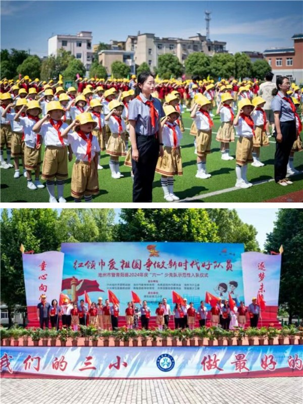 5月29日下午,池州市暨青阳县“红领巾爱祖国 争做新时代好队员”庆“六一”示范性入队仪式在青阳县第三小学举行。市县统战部、教体局、团委、少工委相关负责同志,青阳县部分中小学校少先队辅导员代表出席仪式。青阳县第三小学400余名少先队员、少先队辅导员参加仪式。
