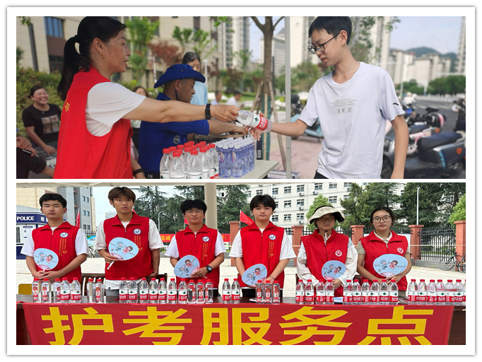六月艳阳高照,炎热的天气丝毫没有影响青年志愿者的热情,他们在爱心助考志愿服务点为考生发放矿泉水、助考文具包等爱心物品。同时,志愿者还为考生家长和教师、交警等中考服务人员提供全方位的贴心志愿服务。
