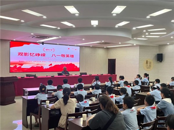 为弘扬爱国主义情怀,讴歌人民军队的丰功伟绩,激发广大少先队员爱党、爱国、爱军热情,在8月1日建军节这一天,贵池区人民检察院、团贵池区委、贵池区少工委、平天湖小学、邵娜少先队名师工作室联合开展“回忆峥嵘岁月 传承红色精神”主题观影活动,邀请60名少先队员和家长聆听退伍军人讲述红色事迹、参与知识问答、观看红色题材电影。