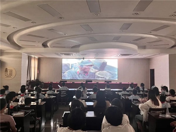 四、观影红色题材影片,共筑爱国情怀。最后,活动在爱国主义影片的放映中圆满落幕。影片以其震撼人心的画面和感人的故事情节,深深打动了在场的每一个人。孩子们在观看过程中深受触动,纷纷表示要珍惜今天的幸福生活,努力学习科学文化知识,将来为祖国的繁荣富强贡献自己的力量。