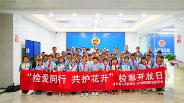 为增进社会公众对未成年人检察及“沐童·护苗”工作的了解,更好地护航未成年人健康成长,5月27日,在“六一”儿童节即将到来之际,共青团青阳县委员会和青阳县人民检察院联合举办“检爱同行,共护花开”检察开放日活动,邀请青阳县第四小学40余名师生共同参与,零距离参观检察机关、沉浸式体验检察工作、互动式了解检察文化。
