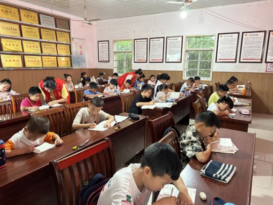 在蓉城镇新中村,村里的青年志愿者们组织起来,为20多名乡村留守儿童开办暑期托管班,给留守儿童们提供了暑期新去处,最大化满足孩子们的学习需求。