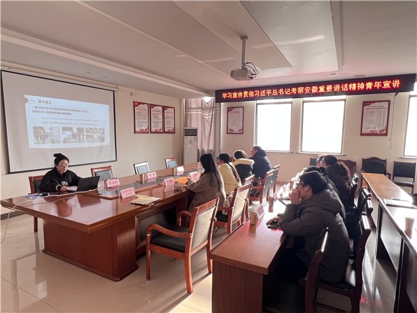 1月3日下午,“理响池州·青年说”习近平总书记考察安徽重要讲话精神巡回宣讲走进石台县。“理响池州·青年说”青年讲师团成员桂晶晶、俞凌欣面向全县各乡镇、教育系统、各学校的青年团干部开展专题宣讲。