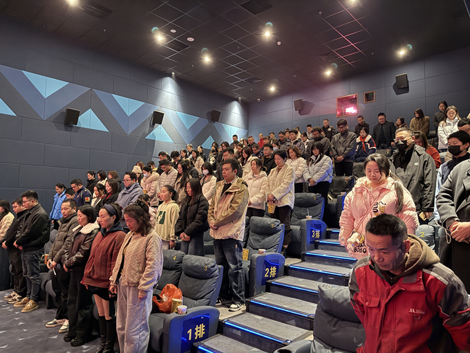 活动以简约庄重的缅怀仪式开篇,全体人员起立为南京大屠杀遇难同胞及抗战先烈默哀1分钟,现场静谧肃穆,哀思绵长。影片中,侵略者的暴行令人发指,先烈们的抗争催人泪下。两个多小时里,观影者全神贯注,情感随剧情激荡。这场观影既是视觉震撼,更是深刻的爱国教育,让历史记忆真正浸润心灵。